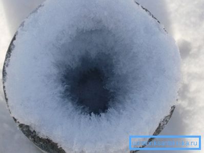 Továbbá: a falak további hűtése esetén az elszállított nedvesség nem esik a felszállóba, hanem lefagy, és fokozatosan csökkenti a hézagot. Néhány ponton a ventilátorcsőben lévő rés majdnem leáll. De a csőben lévő tolóerő továbbra is fennmarad.