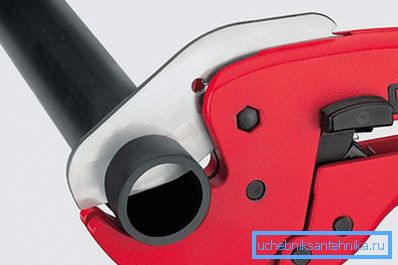 - Különleges ollóval vagy fűrészszalaggal vágjuk le a cső kívánt hosszúságát. A munkát derékszögben végezzük.