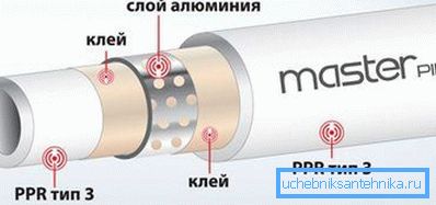 - Az ilyen csőnek három fő rétege van: az LDPE belső, az alumíniumfólia középső része és a HDPE külső része. Mindegyiket kötőanyaggal kell ragasztani (minőségi termékekhez).