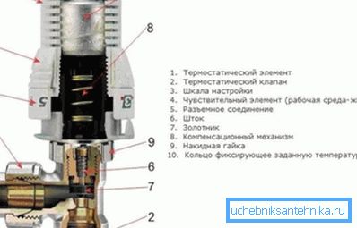 Az ilyen eszköz egy fűtőtest fűtési szabályozó - termosztatikus fej. Ezt az eszközt olyan nevekkel is ismerik, mint egy termikus fej vagy egy termosztát, és a megadott hőmérsékleti paraméterek automatikus fenntartására szolgálnak egy adott helyiségben.