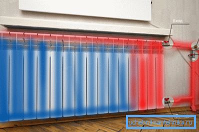 Ha az akkumulátor nincs megfelelően csatlakoztatva, akkor könnyű ellenőrizni. A fizikai törvények szerint a maximális hőkibocsátás akkor következik be, amikor a meleg víz vagy a hőhordozó felülről lefelé mozog. Ez azt sugallja, hogy a vezetőrendszernek felül kell elhelyezkednie, nem az alsó részen, és a visszatérésnek éppen ellenkezőleg kell lennie.