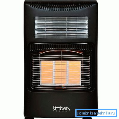 Ez az eszköz két gáz, propán és bután cseppfolyós keverékének láng nélküli égése alapján működik. A hőt a fűtött kerámia panelen át a helyiségbe helyezzük.