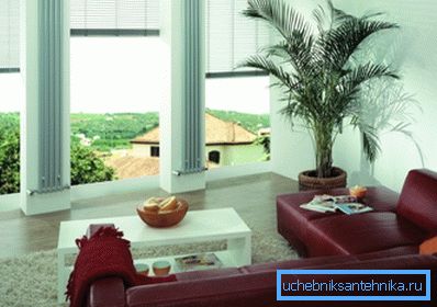 Figyelj! A vertikálisan orientált fűtők gyakran tisztán művészi problémákat oldanak meg, és nem széles körben elterjednek.