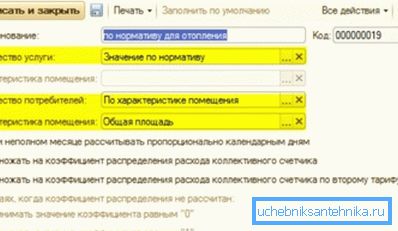 A számunkra ismert referenciakönyvben jelöljük meg az általános ház értékét, vagyis az ODPU-t. Ezután a Számított adatok menüben a fogyasztás mértékét a Proportális elemnek megfelelően kell beállítani a teljes területre az épület teljes területére.