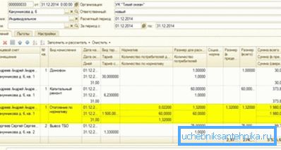 A következő és utolsó szakasz a költség, vagyis itt már ismerjük az árat vagy az összeget, amelyet a szolgáltatásért meg kell fizetnünk. Ne felejtsük el, hogy ez lehetséges két eszköz jelenlétében - ОДПУ és ИПУ. Ebben az esetben a segédprogramokat használják / Dokumentumok / Felhalmozódások / Segédprogramok.