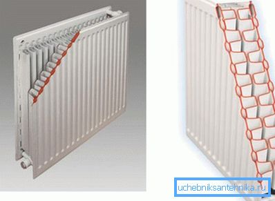 Ezenkívül a tervezés egyik fontos jellemzője a levegő konvekciója, bár ez csak a több panelből álló radiátorokra vonatkozik. Ez a funkció a hűtőközeg vezetékei között elhelyezkedő levegőcsatornák jelenléte miatt valósul meg.