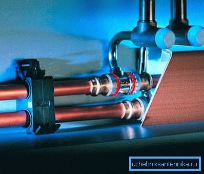 Figyelj! Amikor a lábazati modellt a városi fűtési rendszerhez csatlakoztatja, használjon többrétegű műanyag csöveket, amelyek keresztkötéses polietilénből készültek, speciális szerelvényekkel. A második lehetőség forrasztható a réz szerelvényekkel a csövekhez. Ez megóvja a tervezést a trükköktől, változásokkal a vízhőmérséklet és a túlnyomás hatására.