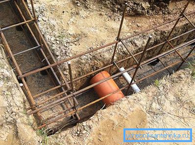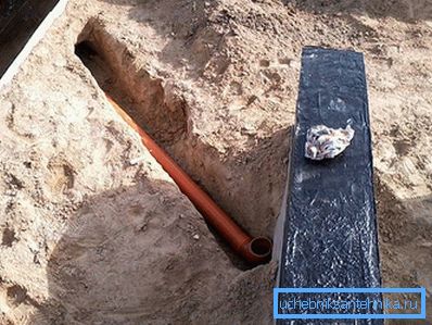- Csatornavezeték mellékelve. Ajánlatos, hogy 15-20 cm-el belépjen, így amikor a talaj elmozdul, nem húzódik ki.