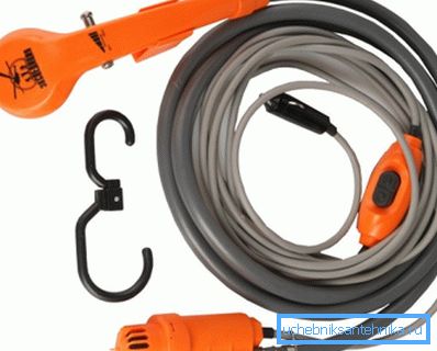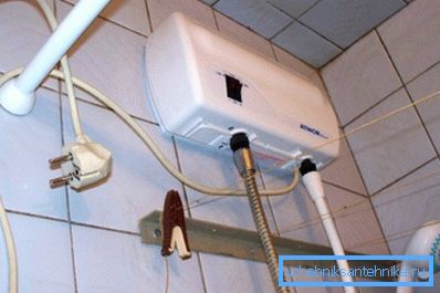 Gyakorlatilag bármilyen ilyen önálló áramlási melegítő használható zuhanyozásra, még akkor is, ha a fülke az utcán található. Itt a legfontosabb a tápegység, de az elektromos kábel a házból meglehetősen egyszerű, csak a biztonsági óvintézkedéseket kell követnie.