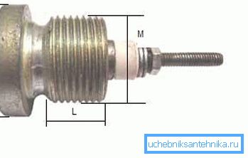 Figyeljük meg, hogyan működik a csőszerű fűtés működése - ez a felső képen látható. A tartályban a fúvóka (M) átmérőjének megfelelően egy lyukat kell készíteni, de ez nem haladja meg a D értéket, ez az eszköz olyan ütköző része, amely rögzíti a fűtőtestet a tartály belsejéből.