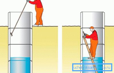 - A víz teljesen kiszivattyúzódik a beton oszlopból, amelyhez rendes vödrök vagy speciális eszközök használhatók. Miután a leeresztés alulról látszik.