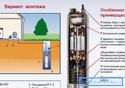 Meg kell mondani, hogy ebben az esetben szükség van egy egyszerű vízellátó rendszerre a kunyhóban egy kútból, mivel a felületi termékekkel ellentétben az ilyen szivattyúk nem tartalmaznak további elemeket. Ez azonban nem jelenti azt, hogy a kész szerkezet rosszabbá válik, vagy működés közben problémákat okoz.